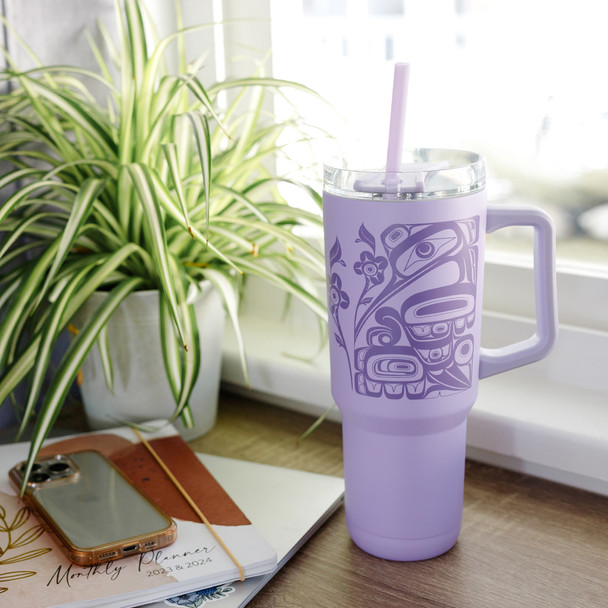 We’ve all heard about the large tumbler craze sweeping the nation, well how about you combine it with gorgeous Indigenous art. That’s what we did, with our 40 oz Insulated Tumblers with Straw. Featuring a captivating screen print Indigenous art design available in 3 designs by Indigenous artists. Crafted with a high-quality 304 stainless steel interior, double-wall design, and ergonomic handle; These tumblers are compliant with FDA standards, BPA-free, and elegantly packaged in a vibrant gift box.